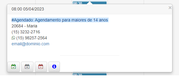 Ao clicar em um horário em que há um agendamento, é possível acompanhar o processo, definindo: