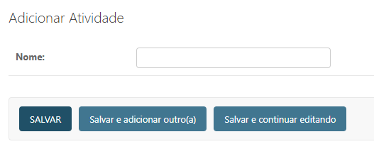 O cadastro de atividades possui somente o nome da atividade.