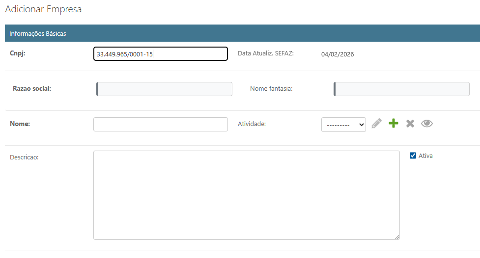 Informe o CNPJ da empresa que deseja cadastrar.