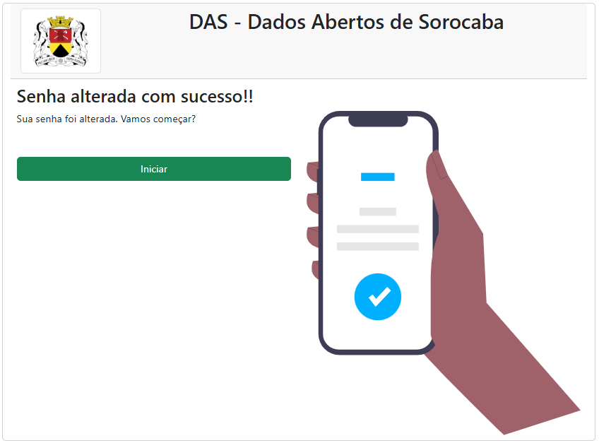 Se os campos estiverem corretos, a senha será alterada, e o botão ‘Iniciar’ volta na tela de início do sistema.