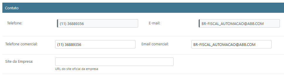 Todos estes campos são inicializados a partir da informação vinda da SEFAZ (com exceção do campo nome), o sistema não permitirá alterá-las, caso seja necessário alteração, deve-se primeiro alterar o cadastro na SEFAZ.