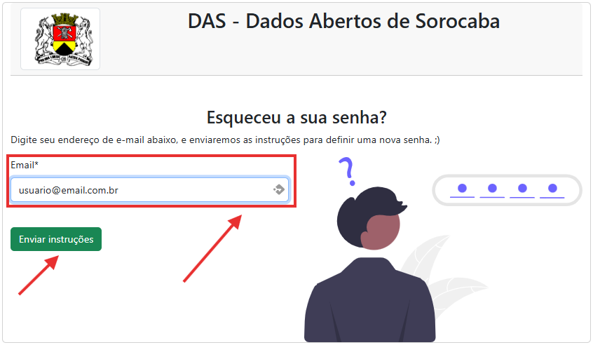 Caso o e-mail informado estiver cadastrado para algum usuário, o sistema enviará para o endereço as instruções de login.