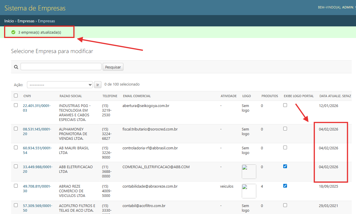 Imagem 31 - cadastro de empresas - atualizar dados via SEFAZ