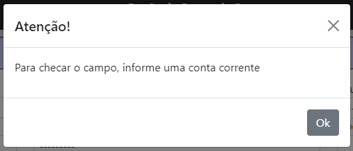 Para checar o campo ‘Habilitar a inclusão de contas no sistema’ é obrigatório informar o campo conta corrente.