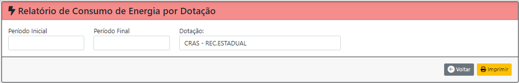 Imagem 53 – relatório de consumo por dotação - seleção do período e dotação