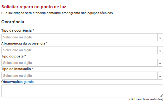 Possibilita registrar novas solicitações de reparo em pontos de luz que se encontram com algum problema dentro da cidade de Sorocaba.
