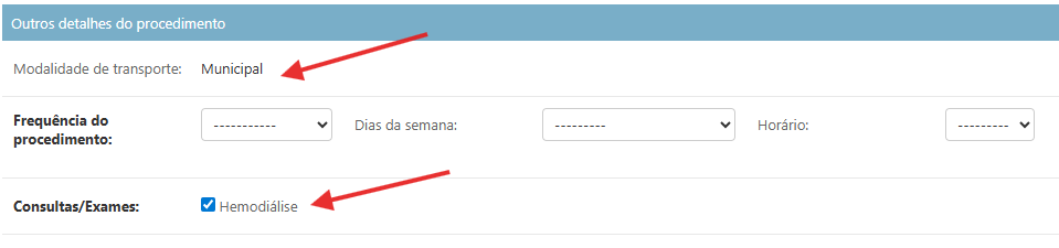 No agendamento da solicitação de transporte de paciente para hemodiálise, é possível informar a frequência e horário do procedimento.