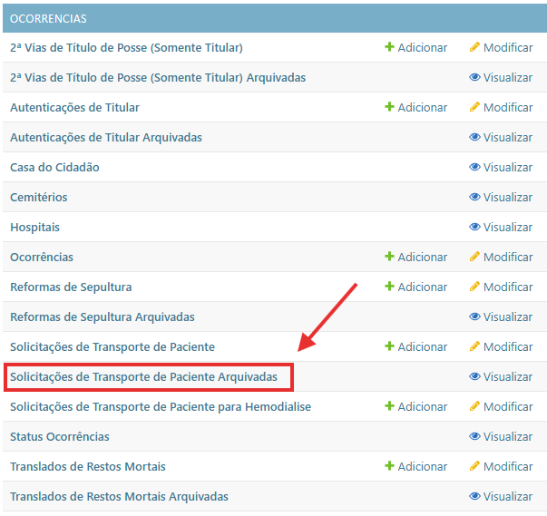As solicitações de transporte de pacientes e as solicitações de transporte para hemodiálise são arquivadas na mesma opção.
