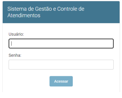 Clique no botão Iniciar. Aparecerá a solicitação do seu Usuário e a Senha. Para acessar o sistema é necessário inserir os dados Usuário e uma Senha.
