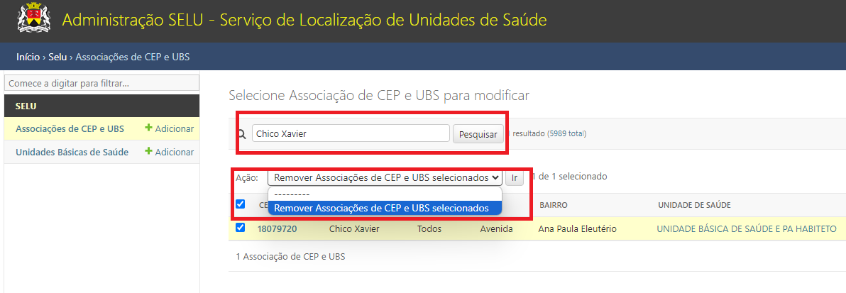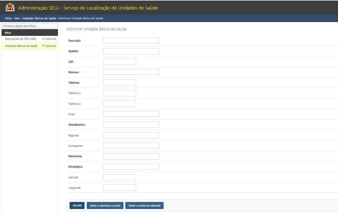 Administração SELU - Serviço de Localização de Unidades de Saúde
