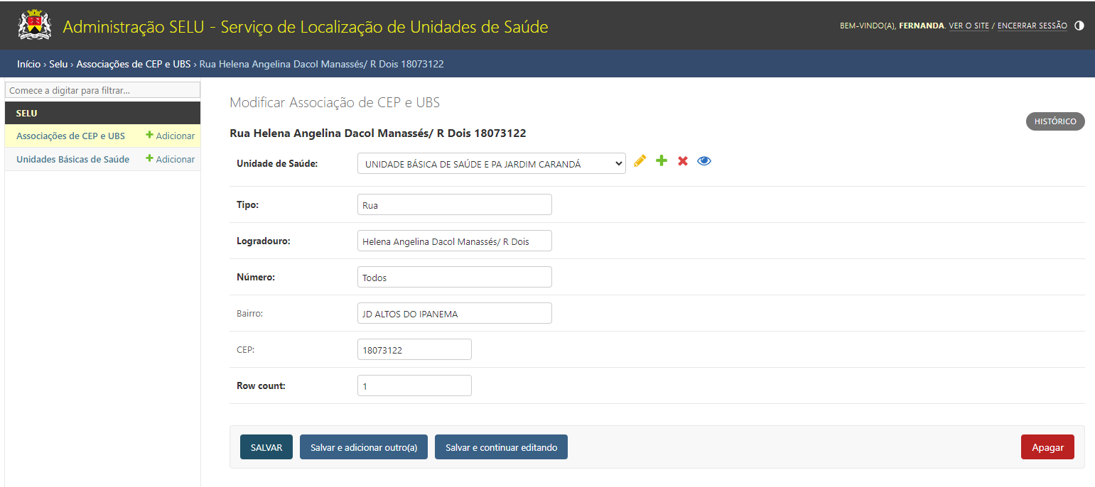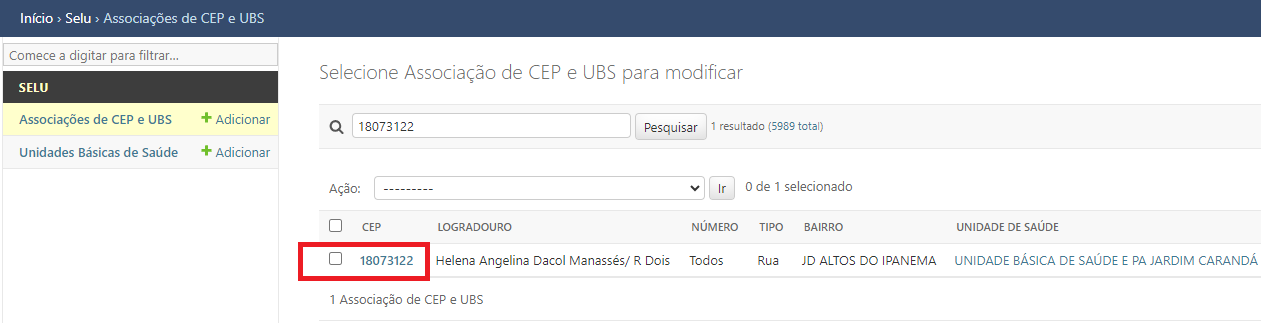 Na opção Associações de CEP e UBS são todos os endereços cadastrados