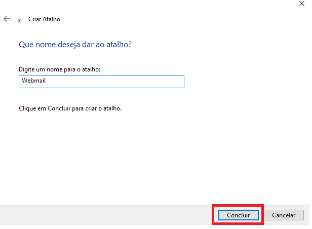 Após clicar em avançar irá abrir uma tela para inserir o nome do atalho que ficara na sua área de trabalho, coloque o nome desejado e clique em concluir (imagem 4).