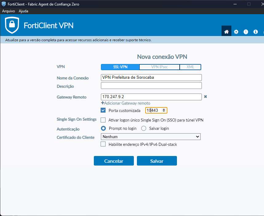 - Nome da conexão: VPN Prefeitura de Sorocaba