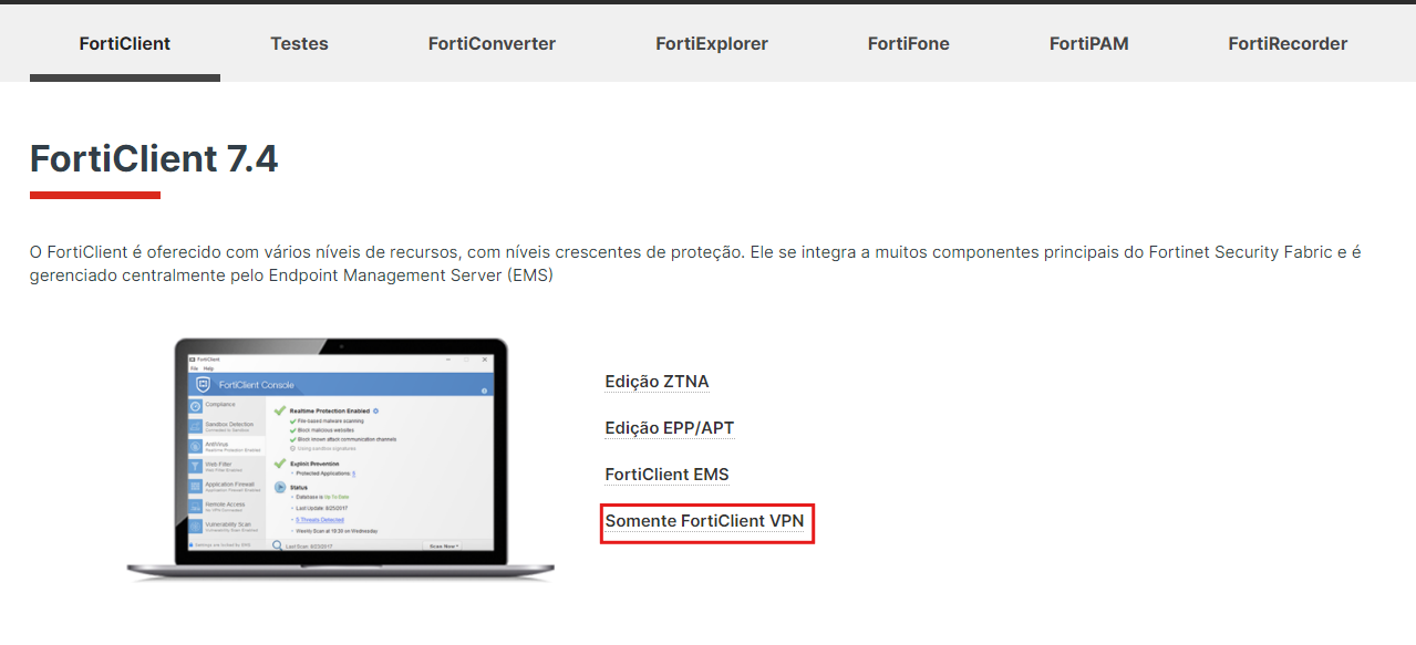 Figura 1 - Tela para download do FortiClient